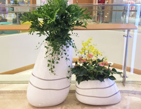 藝術(shù)花盆花器通過(guò)它的材料、造型、顏色來(lái)體現(xiàn)藝術(shù)設(shè)計(jì)理念,是商場(chǎng)美陳中的一個(gè)重要休閑景觀,凈化室內(nèi)空氣點(diǎn)綴裝飾商業(yè)環(huán)境